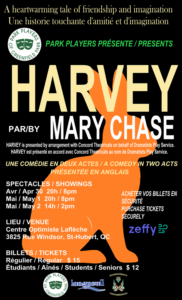 Park Players invites you to join us for this mysterious, warm, and irresistibly funny play: HARVEY. A heartwarming tale of friendship and imagination.