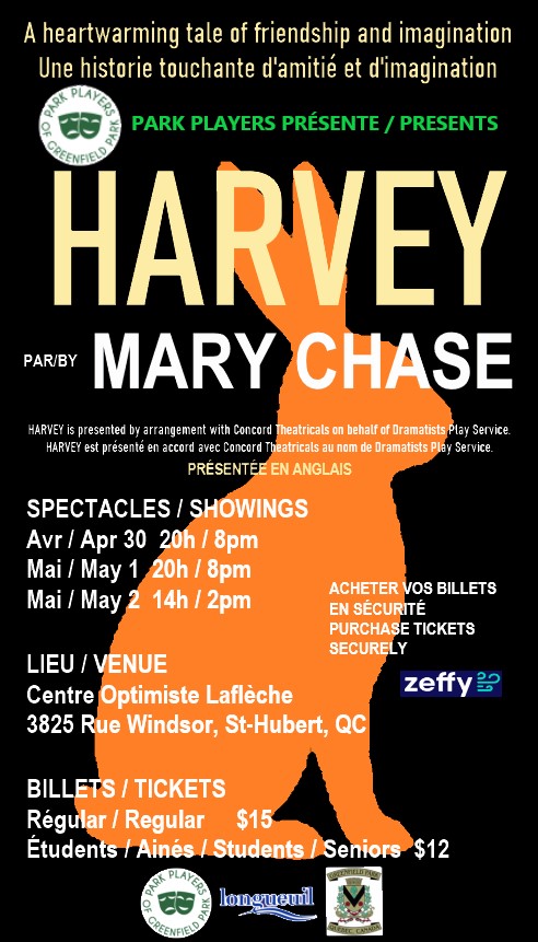 Park Players invites you to join us for this mysterious, warm, and irresistibly funny play: HARVEY. A heartwarming tale of friendship and imagination.